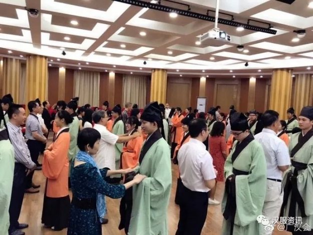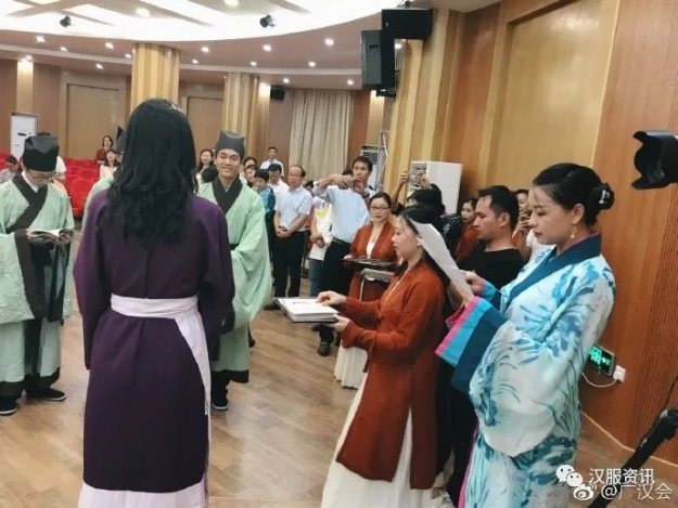 广汉会根据传统的成人礼流程稍加调整简化,整个成人礼神圣且隆重,仪式包括:更衣、学礼、沃盥礼、整肃衣冠、师长开礼、一加礼(男子加冠,类似帽子;女子加笄, 加发簪)、醮子(jiao2)、赐字(父母给孩子取字)、聆训(父母给孩子教诲)、谢礼、礼成(颁发证书)等流程,四十多位学生的父母和亲友共同见证了孩子们难忘瞬间[太阳]。