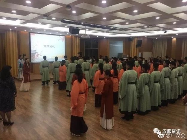 广汉会受广东实验中学的邀请,今天下午在学校和高三(10班)的老师们一起为四十多位学生举办了一场汉服传统成人礼:男子加冠,女子笄礼。