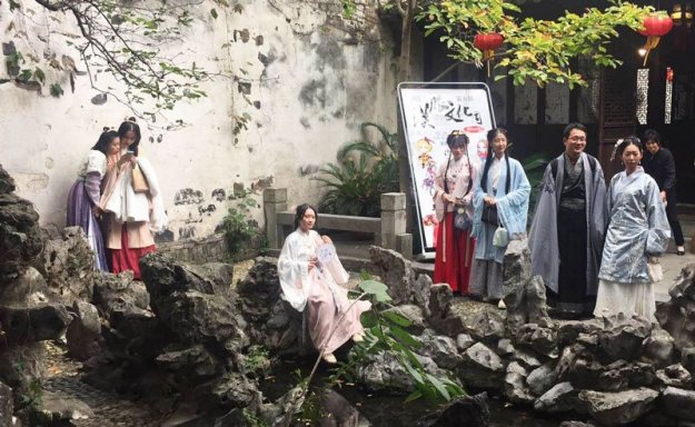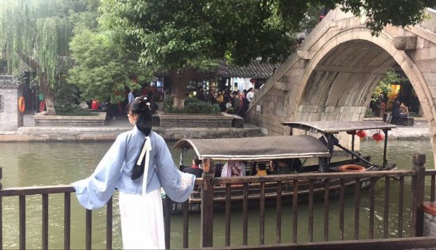 秋尽江南草未凋:西塘汉服文化周一瞥 凤凰网 2017-10-29 07:20 让我们借摄像师“小海”的镜头去领略一下“秋尽江南草未凋”的时节,“小桥流水人家”的美丽西塘报江南很少有这样大风的天气,不过这也难不到我们的汉服美女们。摄影留念的汉服游客。江南园林,一步一景色,一眼一芳草。这两张联系的照片用直观的方式,充分让我们理解了什么叫一步一景的江南园林景观。西塘古镇街头随处可见身穿汉服的美女,也就是我们的摄影师小海口中的“漂亮小姐姐”。穿汉服的不止有美女,也有帅哥。西塘古镇一景。汉服文化周期间,很多游客都入乡随俗,身穿汉服游览西塘古镇景色。乌篷船上的汉服美女,小海抱怨:为什么我们忘记计划在秋“游”西塘了呢?西塘古镇一景。西塘古镇一景,颇有“廊桥一梦人未醒”的感觉。西塘古镇一处窄窄的小巷内,红衣女子惊鸿一瞥。置身西塘古镇,身穿汉服的游客在人群中也是那么自然,毫无违和的感觉。昨夜小楼秋风瑟,今朝依窗望春归。布袋戏人偶展览。布袋戏人偶展览。 秋尽江南草未凋:西塘汉服文化周一瞥