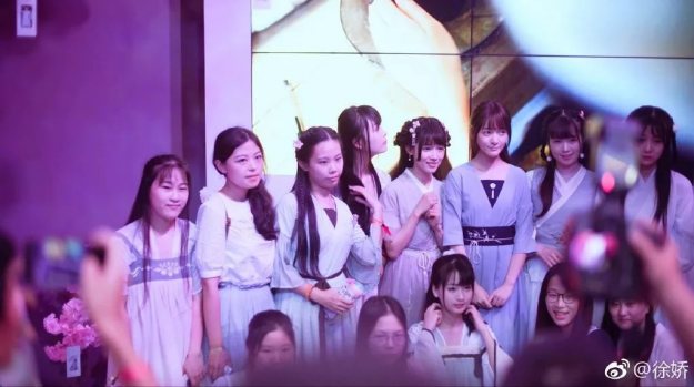 徐娇(上排右三)身穿汉元素参加淘宝“造物节”活动