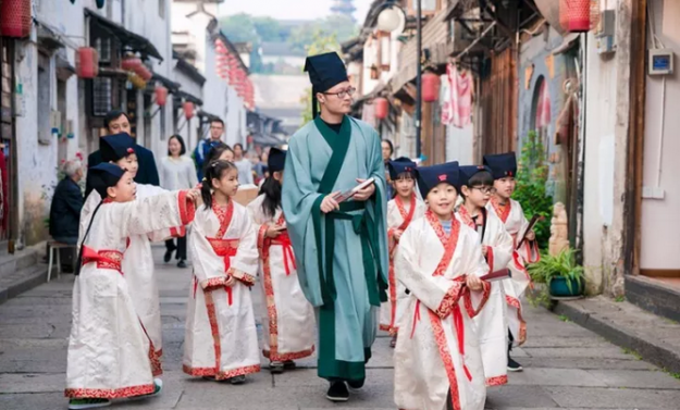 身穿汉服,在蕺山书院听先生讲解绍兴的历史传统文化;手撑油纸伞,到书圣故里实地探访王羲之当年的生活轨迹……近日,书圣故里景区“讲学游”人气颇高。据悉,活动一经推出就受到不少中小学生和家长的欢迎,双休几乎每日场次爆满。