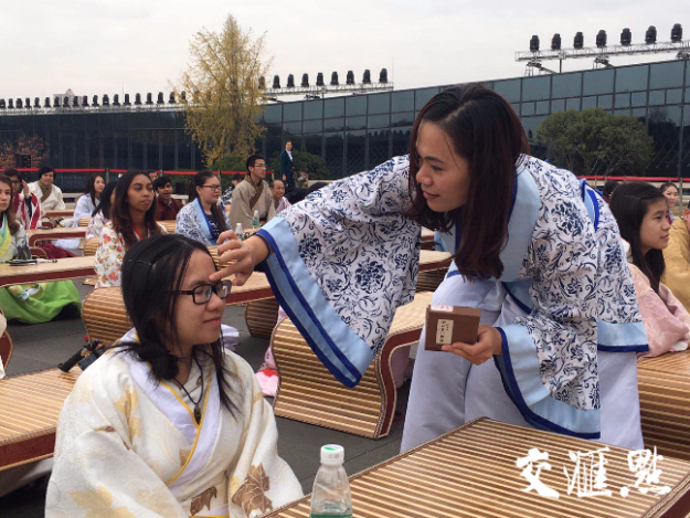 来自阿富汗的李连龙挥舞着袖子,体验汉服魅力。他说,穿上汉服,感受到一种洒脱和自在。他热衷中国文化,本科在国内学习汉语言,目前在苏州大学政治学公共管理专业学习。将来他希望成为一位外交家,在两国间架起政治、经济、文化的友好桥梁。