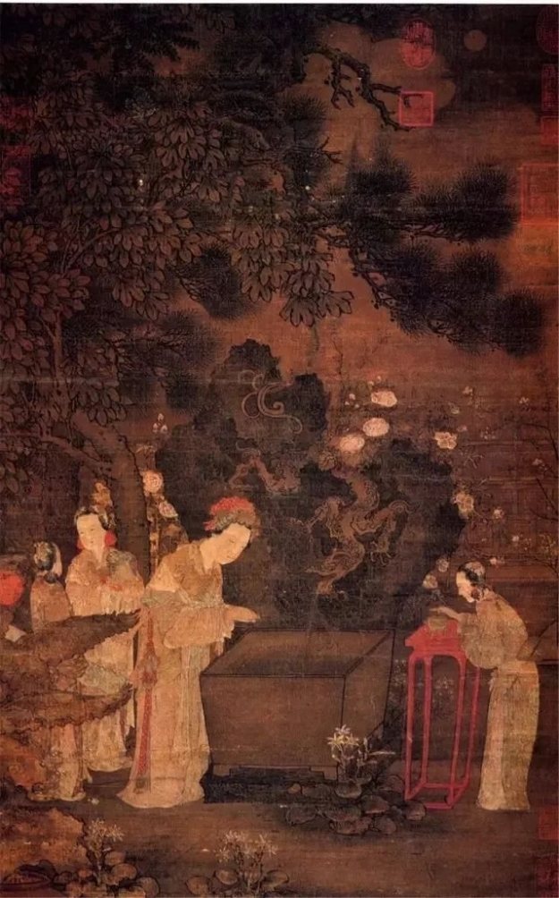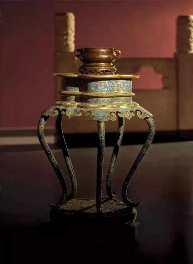 “富贵之家,或置厅堂,上陈炉鼎,焚兰煴麝;或置中庭,夜色将阑,仕女就之祈神乞巧。道宫佛殿,也设香几,焚香之外,兼放法器。”