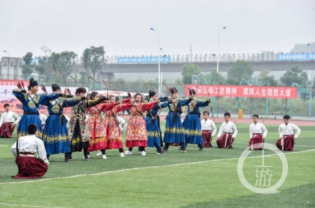 重庆工程职业技术学院党委书记易俊介绍,学校于2015年3月将射艺礼仪文化引进体育教学,同时作为重要的文化活动和文化品牌进行建设,备受学生喜爱。此次在运动会开幕式上表演射礼,丰富运动会开幕表演的同时也是对射艺教学成果的一次展示和检验。