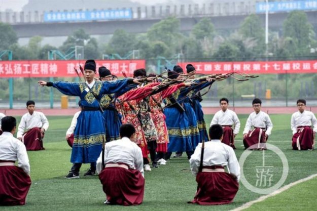 而在今年全国多地高校在举办运动会时就引入推出了射礼表演: