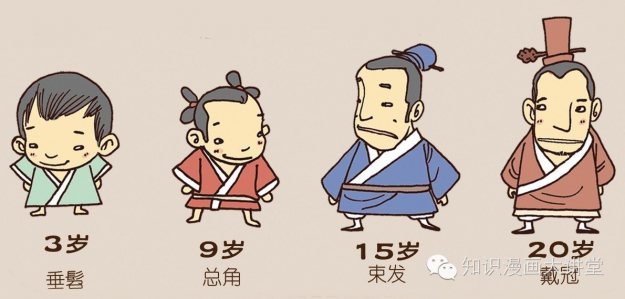 3、总角:古代幼童把垂发扎成两结于头顶把头发扎成髻,形状如角,因而也用“总角”来代指儿童的幼年时代。
