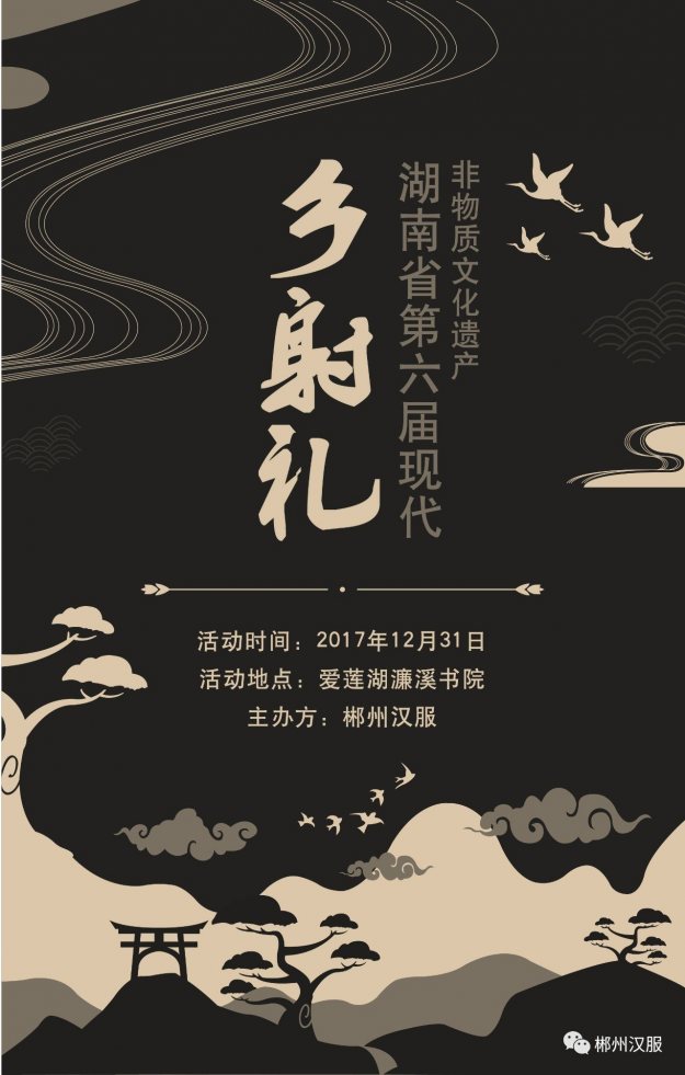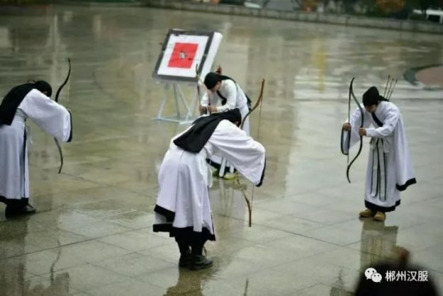 西历2016年11月20日,由岳阳汉服及湖南理工学院巴陵汉风文化社主办,于岳阳市博物馆前坪举行了湖南省五届乡射礼暨湖南省第二届传统弓箭交流赛。