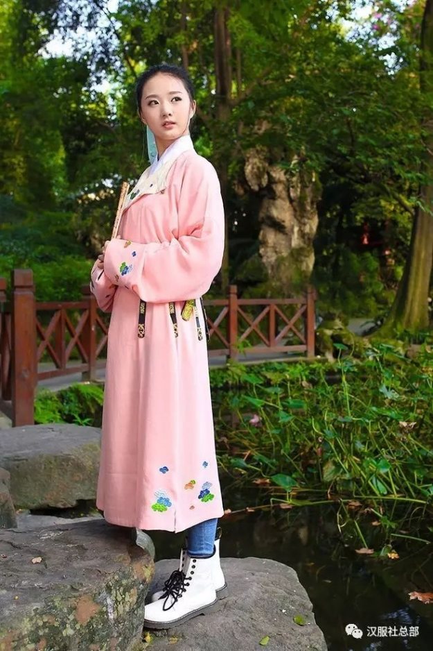 圆领,又称盘领、团领,衣领形似圆形,内覆硬衬,领口钉有纽扣,是汉服系服装常见款式之一,可追溯到汉初。