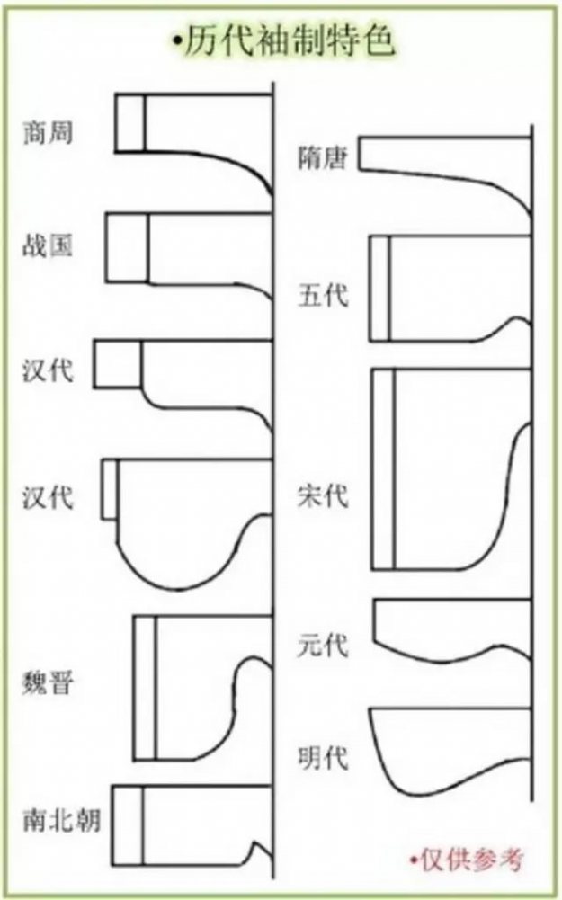 广袖:汉服中的大袖和广袖并没有本质上的不同,都是和窄袖相对而言的,只是不同时期的叫法区别而已。