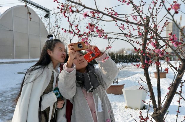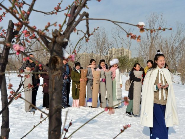 西安市植物园今日(29日)迎来了一批特殊的游客。近30位家长和孩子在漫天雪光里踏雪寻梅。穿汉服、弹古琴、识梅花、读梅诗……在这场亲子活动中,孩子们在和梅花的亲密接触中,体会到了传统文化的魅力。
