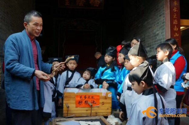 逛古村、穿汉服、学造纸...东莞这些孩子的寒假生活太有趣了 东莞阳光网 2018-02-05 01:50 昨天(3日)下午,茶山图书馆寒假“学研行”第七场活动“古法造香皮纸”在南社村举行。小朋友们穿上汉服,在老师的指导下亲自体验用莞香造纸的全过程。小朋友们在蓝老师的教授下,体验简化后的造纸过程。用事先做好的网膜“抄纸”,把水中的纸浆均匀地揽进网膜,滤掉水后便剩下一层薄薄的纸浆膜,这个“造纸”的过程就完成了。据了解,莞香皮纸是以东莞的莞香树皮为原料手工制作出来的纸。莞香皮纸质坚韧耐用,呈淡褐色,工艺讲究的香皮纸呈半透明状,很薄。而且保温防潮防虫蛀,用它书写文书契约,不易褪色,不会被虫蚀,保存数百年不易折裂,皮纸曾在我国金融印钞史上,发挥了重大的作用。 昨天(3日)下午,茶山图书馆寒假“学研行”第七场活动“古法造香皮纸”在南社村举行。小朋友们穿上汉服,在老师的指导下亲自体验用莞香造纸的全过程。