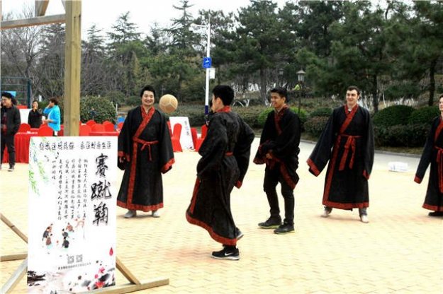 穿着汉服赛"蹴鞠" 引来不少"洋面孔"