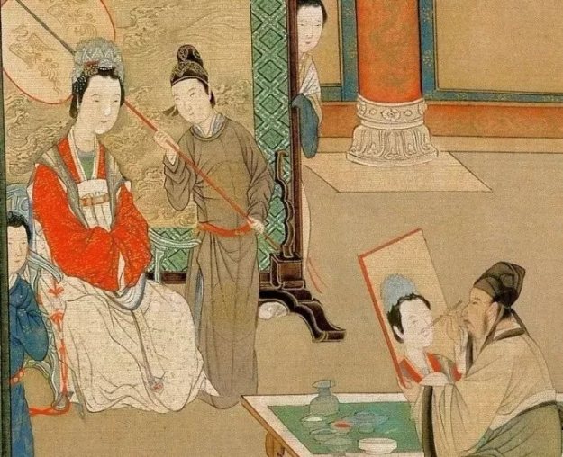 深衣有曲裾与直裾之分,裾为衣服的大襟。直裾,就是衣襟从身子的侧面垂直而下。曲裾,则是把衣襟接长为三角形,绕到身后,然后用丝带系扎。直裾其实很像当时的内衣袍,而东汉后,它们也确实合二为一,变成既可内穿也能外穿的“袍”。隋唐时期,承袭深衣形制的袍,遇到了喜欢胡风的皇帝。于是胡人的圆领与汉族的长袍(交领)被合为一体,变为圆领长袍,而且还成了官服。