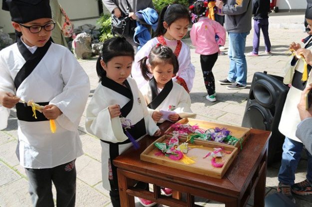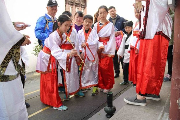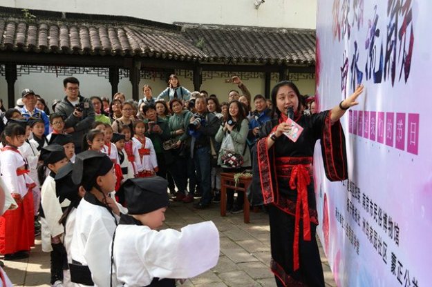 讲述“上巳节”的由来及礼仪,演绎象征消灾祛病的祓禊(fú xì)仪式,让参与者玩“传花雅集”的古典游戏……15日下午,由建邺区妇联,南京民俗博物馆,扬子晚报“扬子社区行”、“扬子小能人”,蒙正公益,江心洲街道洲岛家园社区,金陵国学堂联办的大型户外公益活动,在有南京九十九间半之称的甘熙宅第内举办。活动现场进行了直播,上万名读者围观。