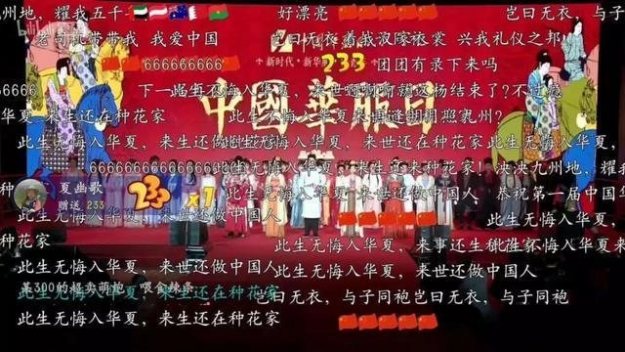 这场由共青团中央,B站,东家等联合推动的“中国华服日”活动,最终在多个平台进行了直播,观看者超过了数百万,弹幕里一片“来世还生种花家。”