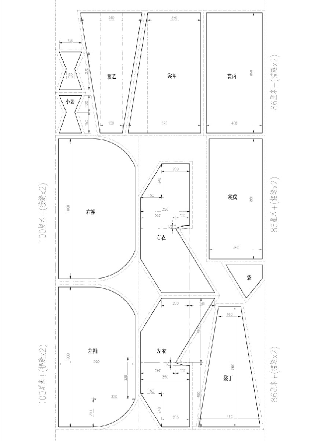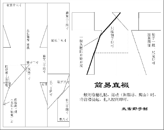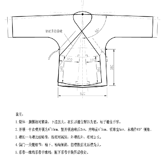 汉服讲求宽松,所以袼(腋部)应比较大,至少是一尺,但也不需要高于上臂长度,也就是高度在50cm以内。