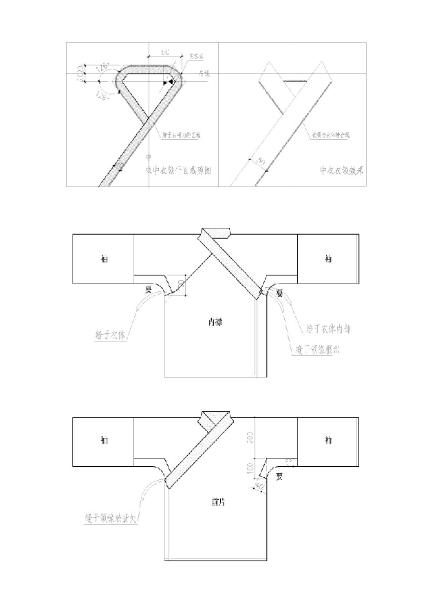 袖子的末端可以收袪,也可以敞开。袪的宽度至少容纳两手掌并起的宽度(当然便装窄袖不在此列)。收祛的方法可以是袖子渐渐用圆滑綫收上来,也可以外形如同广袖,只是缝合收口。