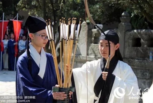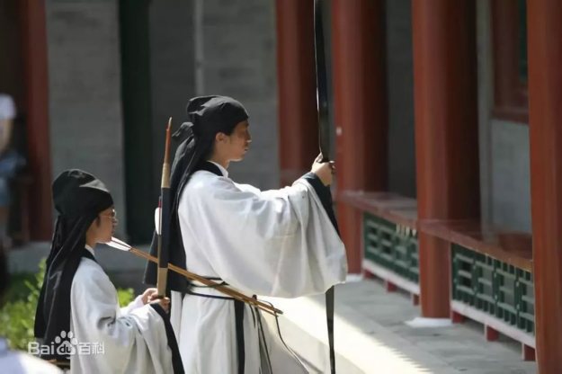 至此,司射上堂对宾行揖礼,禀告宾:“三耦卒射”,宾行揖礼还。