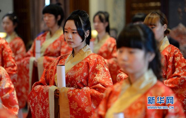 “汉服成人礼”渐成趋势 传统文化受喜爱 河北共产党员网综合 2015-04-08 11:02 少女们在成人礼仪式上。当日,西安多名汉服爱好者齐聚汉城湖举行汉式女子成人礼。上一页 1/9 下一页 当代,社会上重新出现了复兴汉服的热潮,希望透过复兴汉服让国人认识自身中华传统文化的重要性。