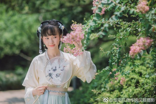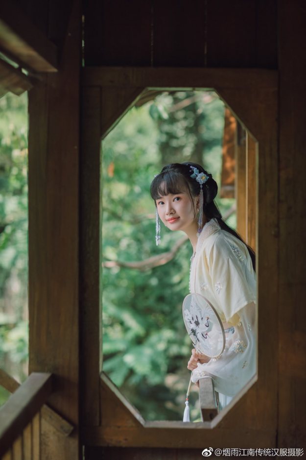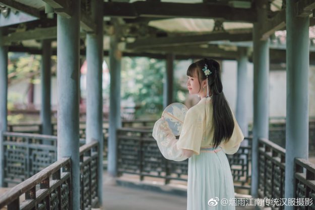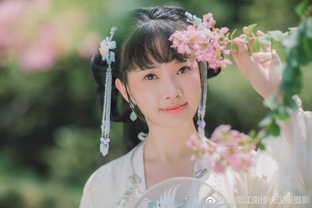 【汉服摄影】届笑春桃兮,云堆翠髻 微博 2018-10-17 01:40 一组夏日小清新,这一组是在正午大太阳底下拍的,天很热,太阳也很毒!辛苦拍照的小姐姐了!一位会自己制作钗环的小才女哦!出镜@Mercury_Re妆发摄影@姜老师vv 来源 微博@烟雨江南传统汉服摄影