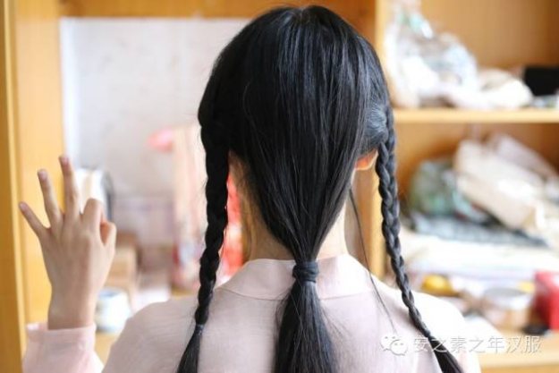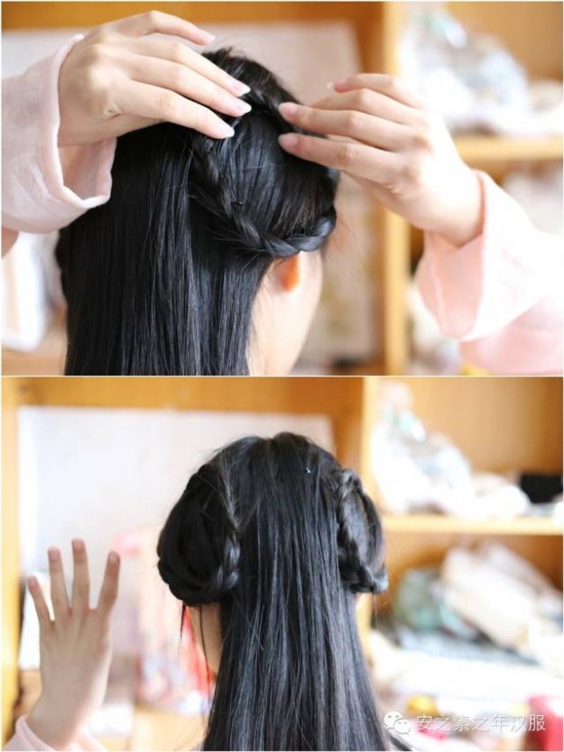 将两边的头发梳成三股辫