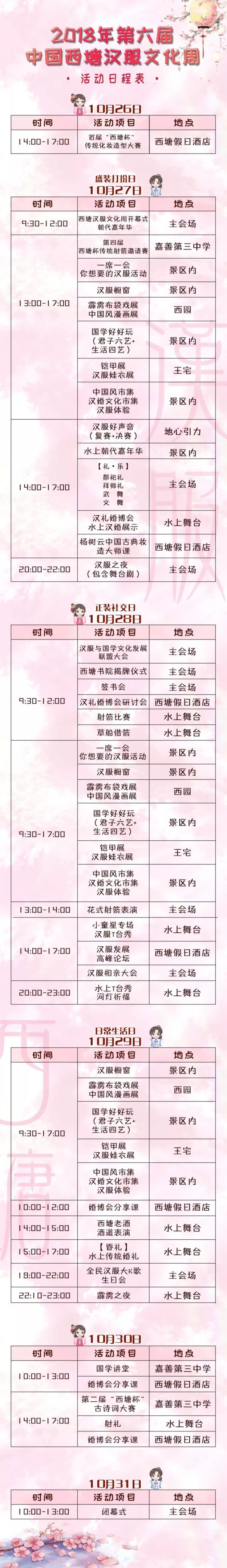 很多汉服活动可能会同时进行,大家可以先选择一下自己喜欢的活动项目,然后在通过活动日程安排表查找到对应的时间,就可以去参加啦!!