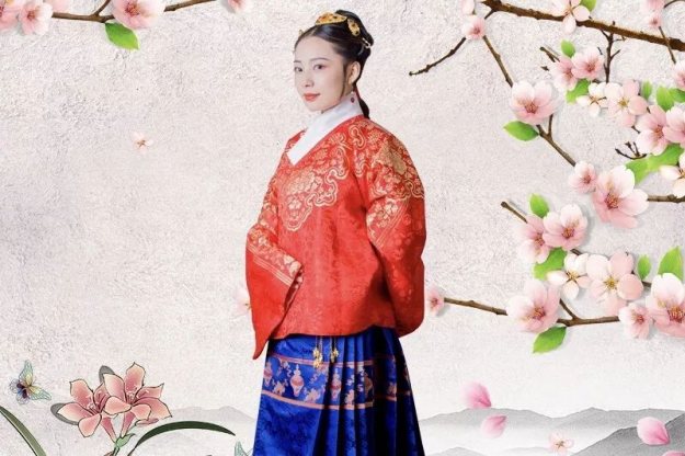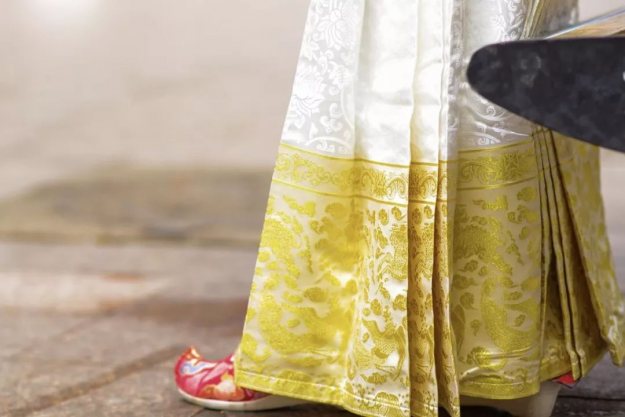 且马面裙因为在裙头将两片布料连接,故此亦为一片式围在腰间的下裙。