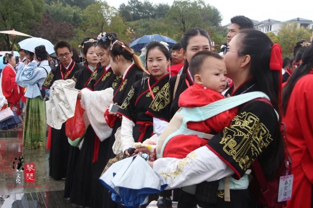 “今天上午的入城仪式以及下午的天气真的不算好,但这恰恰见证了汉服复兴15年风雨兼程,初心不改!”