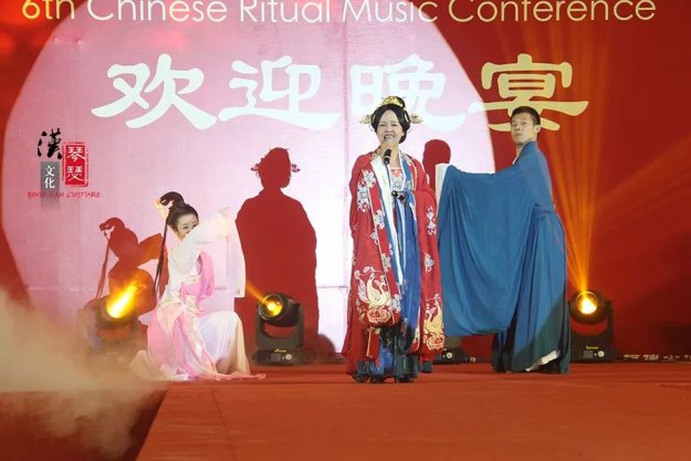 晚上的欢迎晚宴,蕾蕾老师带领着琴瑟的小哥哥小姐姐们表演了《重回汉唐》。