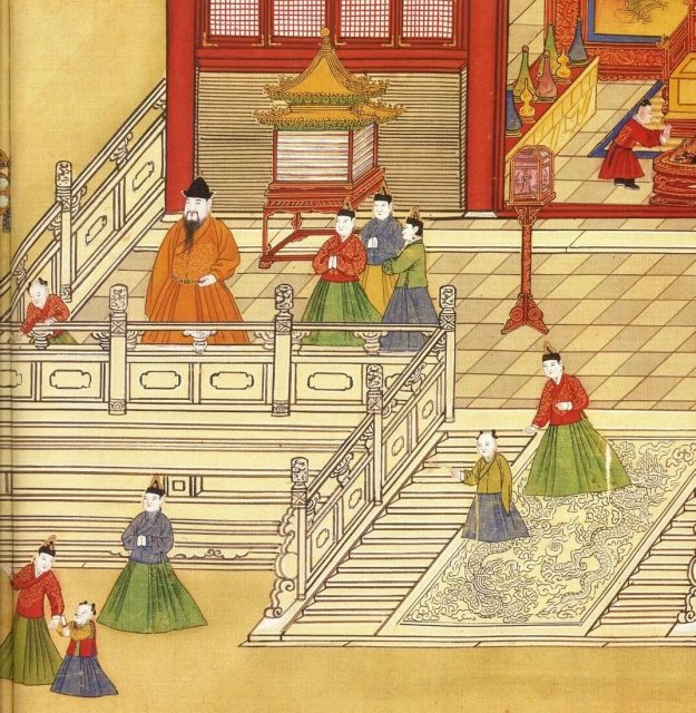 《礼记•玉藻》记云:“天子素带,朱里,终辟;诸侯素带,终辟;大夫素带,辟垂;……”无论是冠服,还是蔽膝、束带,均以颜色的分别来指示衣着者的身份,其中赤、朱居最高之地位。
