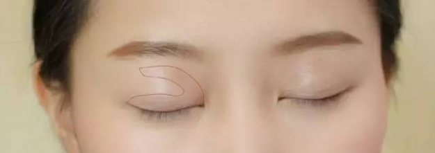 4.在眼眶范围内扫上浅色眼影,提高眼部亮度,需要注意这不是通用步骤,眼睛较鼓的朋友尽量避免在眼球部分扫高光。