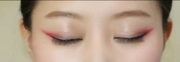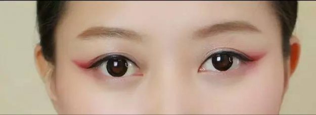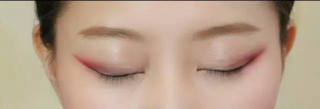 7.眼尾部分,用红色眼影勾勒出眼尾线条,向四周晕染开。