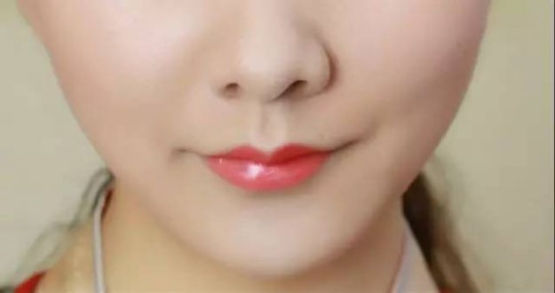 11.最后一步,口红。般弱的唇形很有特点,唇峰非常明显,所以在画口红时,一定要把唇峰画出,最好是在唇峰上方再上一层高光,可以突出唇部轮廓,增加秦般弱特点。般弱妆面完成~