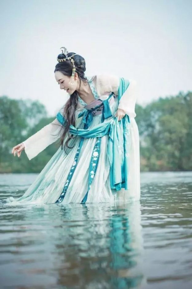 在古代,一般女子的襦裙装裙子束的都不是很高,而南北朝到隋唐五代时期出现的一种裙腰束的非常高的襦裙,一些服装史上多称之为高腰襦裙,根据现在人们对它的考证,一般改称之为齐胸襦裙。