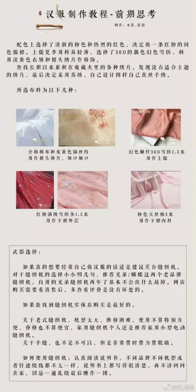 看完了齐胸入群的简介,下面就一起来学习一下齐胸襦裙的制作吧,源:苏-宿宿