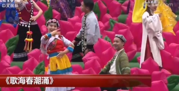 终于有一天,汉服和其他兄弟姐妹,一起站在了舞台上,代表他自己的民族和文化。