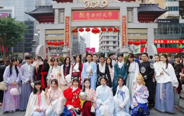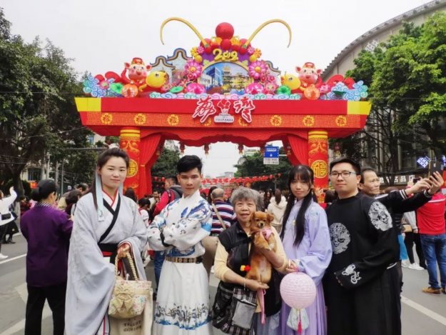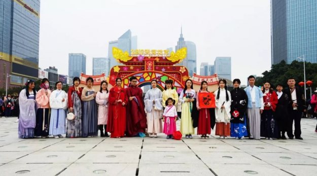 广州过年,花城看花——汉服广东4区花市打卡 汉服资讯 2019-02-06 10:44 广州过年,花城看花:汉服广东4区花市打卡 2019年2月2日,腊月廿八,汉服广东召集同袍穿汉服逛花市,分别在越秀、天河、荔湾、番禺区花市进行,而后,部分区队还进行了汇合、聚餐,其乐融融。 以下为部分图片(视频在最后)。 岭南花事,花开倾城!十里长街,繁花似锦。 “好一朵迎春花人人都爱它……” 前方高能! 各种自拍照、游客照~ 萌萌哒汉二代合影。 如此欢乐。 自拍大合照来袭…… 嗯,游客也要来一张。 各分队大合影。 聚餐时、地铁上:
