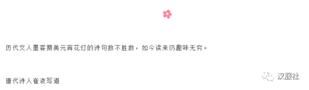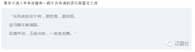 中国的情人节-元宵节 汉服社 2019-02-20 11:24 生查子·元夕 欧阳修 宋 去年元夜时,花市灯如昼。 月上柳梢头,人约黄昏后。 今年元夜时,月与灯依旧。 不见去年人,泪湿春衫袖。 元宵习俗