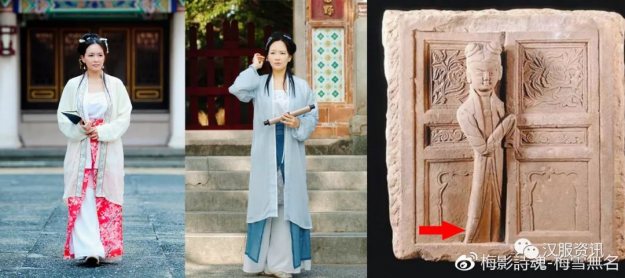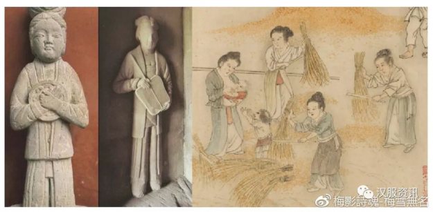 陳果[5]在這一基礎上加以申述,認為,如淳曰:「交輸,割正幅,使一頭狹若燕尾,垂之兩旁,見於後,是《禮記.深衣》『續衽鉤邊』,賈逵謂之『衣圭』。」蘇林曰:「交輸,如今新婦袍上掛全幅繒角割,名曰交輸裁也。」根據漢書中對交輸的二種解釋來看,交輸實為一種服裝的裁剪方法,也稱交輸裁。「割正幅」、「全幅角割」二詞說明了此種裁法,需要將整幅的布帛裁開,而「一頭狹若燕尾」和「衣圭」則是裁剪後的形態特點。這樣一來,交輸的裁剪原理和結果都十分清晰明瞭。