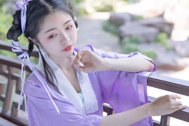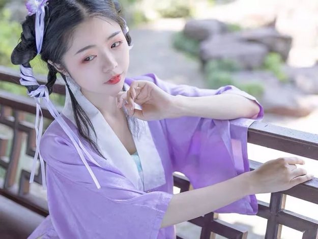 穿着杏色褙子或者米黄色褙子,里面加一件白色中衣,搭配紫色下裙。这种穿搭会有很阳光的感觉,适合春天的气质。而且这种穿法稍微带点“厚重”,能应付早晚温差,也是一种不同的美哦。