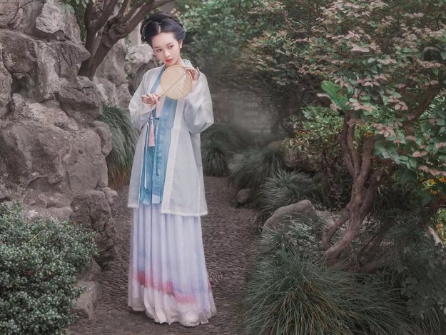 我们先从褙子本身的薄厚说起吧,住在南方的小伙伴,可以选择轻薄的面料,像纱、雪纺这类布料。而住在北方的小伙伴则可以选择用薄毛呢、铜氨丝等稍厚的布料制作而成的褙子,这褙子可以称得上是春秋皆宜,不论南北皆可穿着的汉服了。