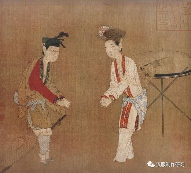 也可以理解为,宋代女性的上衣都是“两件套”:由一件围裹胸背的裹肚和一件对襟外衣组成。说起来,这就是现代女性夏季内穿小背心、外罩小外套的穿法!