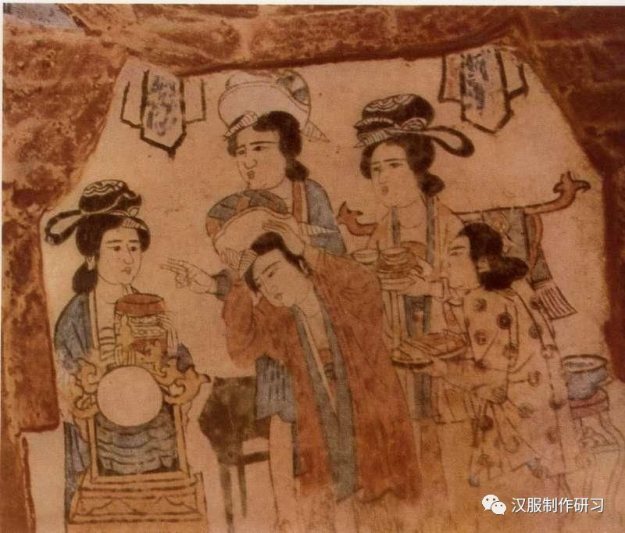 著名的《杂剧人物图》(画家佚名),我们可以看到两宋时代的女性服饰,完全承袭了晚唐、五代女服的形式。