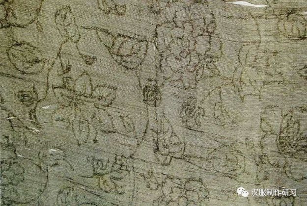 下:湖南衡阳北宋墓出土缠枝牡丹花纹绞纱实物(单衣的残片)