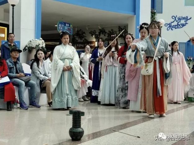 不过在2019年3月17日在万达广场上的一场汉服活动中,也有“投壶”这个环节,但似乎礼数上就显得简单了许多。