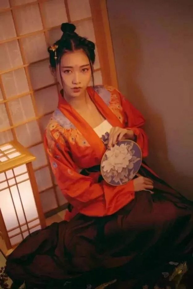 上襦大红,下裙黑色或白色。黑红,红白一直都是经典的搭配,大红这个颜色太浓烈,除了中性色、蓝色搭配它,其他颜色真很难hold住。