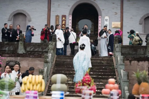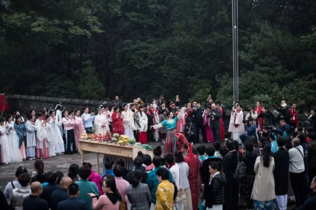 来自全省各地的二百余位传统文化爱好者穿上汉服流连在雪窦山的佳山秀水间,感受这片得天独厚山水的迷人春韵,品味弥勒圣地的佛光禅意,承袭中华传统文化的诗情画意。活动设百花庆典、八雅花事、巡游古寺、雪窦密码、燃灯祈福等环节,以琴棋书画、诗香花茶串联起一场春天的风雅胜会。
