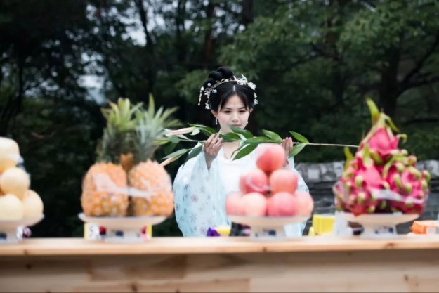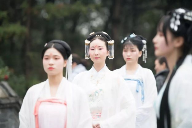 我们的花神们身着美丽的汉服,今天这里上演了一场盛大的汉服雅集,在古寺花树之下,在长廊小桥尽头,穿上汉服的姑娘们带着美好的心愿,成为花仙子,一起在雪窦山过了一个别样的花朝节。