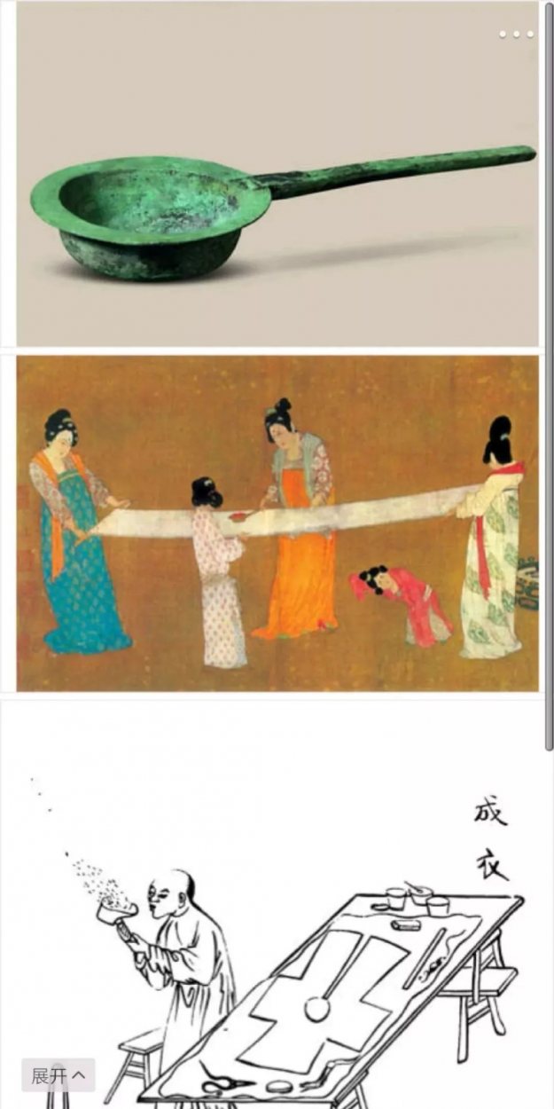 A:古代是有熨斗的,最早熨斗是一种刑具,后来慢慢用于熨烫衣服,形状每个朝代都有所不同,有的像勺子,有的像锅碗,最开始是青铜熨斗,后来慢慢有了金属熨斗,瓷器熨斗。古人熨衣服时常熨斗中可以放上烧红的木炭,或者注入热水,再去烫衣服。唐代《捣练图》中有一部分就是女子在熨烫布料,手上拿的就是熨斗。