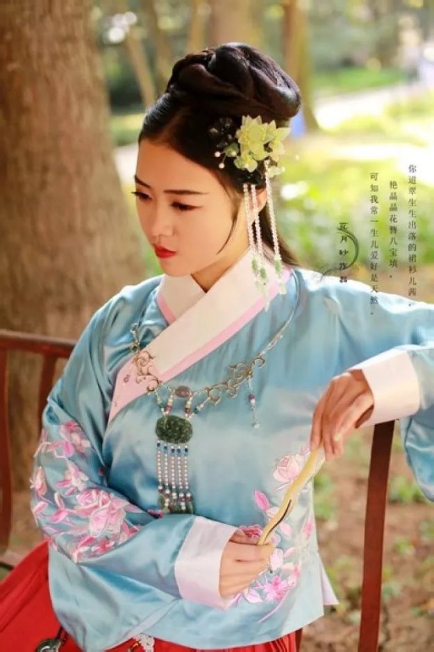 这里说袄,是指带夹层的上衣,倘若想在夏天穿着,挑选单层轻薄的料子(即为衫)便可。虽然琵琶袖只是比广袖稍微方便了一点点,但也不至于像广袖那样夸张。只是作为聚会一类的场合还是适用的。